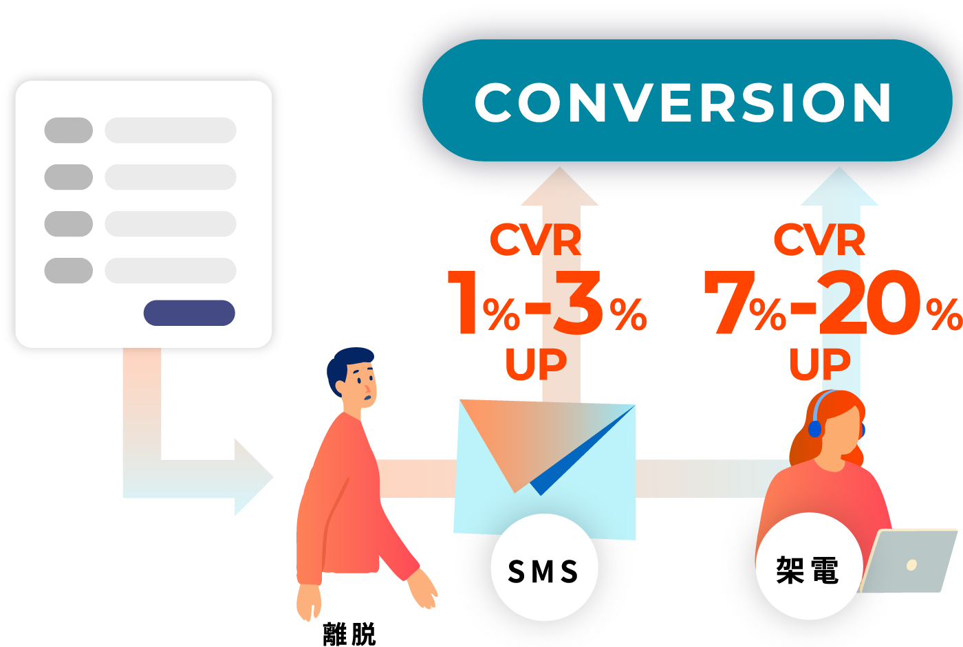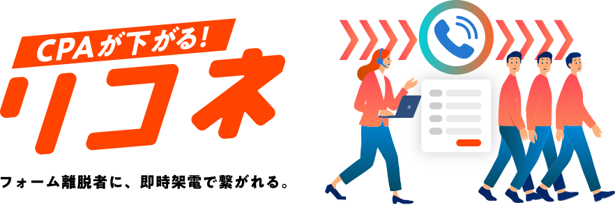 リコネはフォーム離脱者に対し、人を介した即時架電によって、離脱後のモチベーションの高いユーザーと繋がることができます。